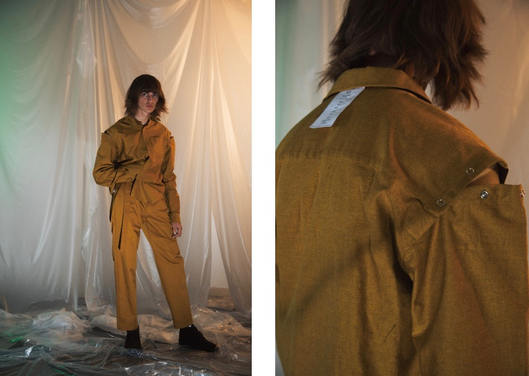 LOOKでも印象的だった肩と襟が外れるシャツと